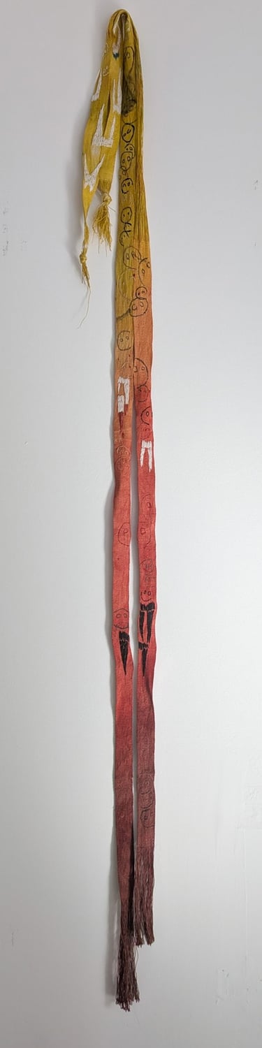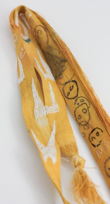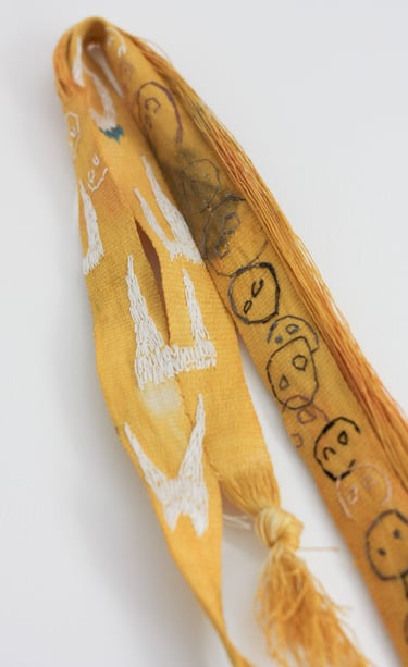 Tissage artisanal des textiles, teintures végétales sur soie. Papier, dessin automatique à la main gauche.